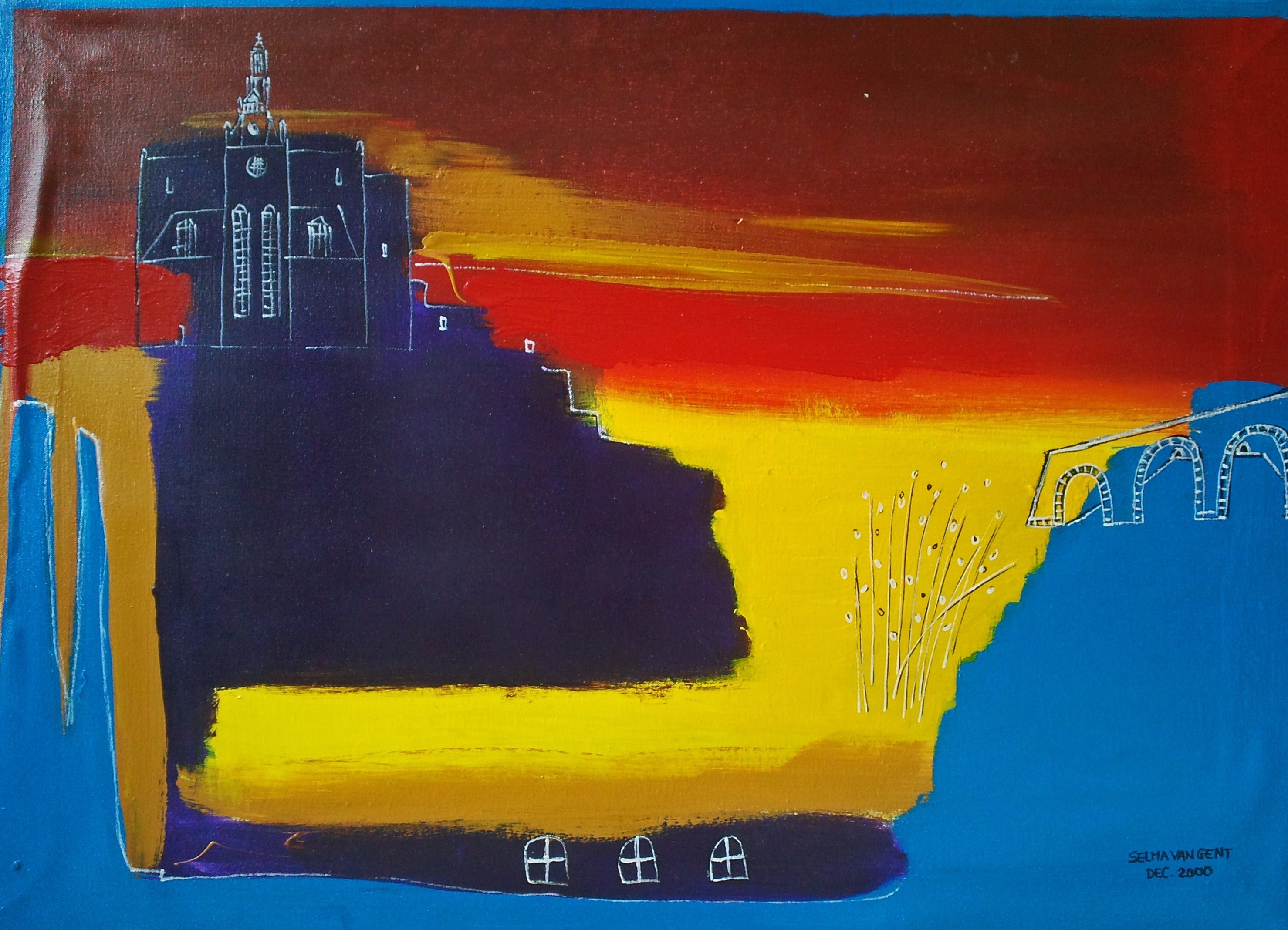 Selma van Gent woont en werkt in Amsterdam, zij schildert sinds 1997 op doek. De acrylverf schilderijen kenmerken zich door een eigen beeldtaal, veelzijdigheid in kleur, thema, techniek en beperkt zich niet tot een richting of stijl. Nooit zijn haar doeken fotorealistisch of geheel abstract. Voor Selma geldt de regel dat een geslaagde kleuren-combinatie of techniek niet zomaar herhaald mag worden. Hierdoor blijft elk nieuw schilderij een uitdaging!! Naast kunstschilder is zij ook decoratieschilder voor theater, musea en tv.