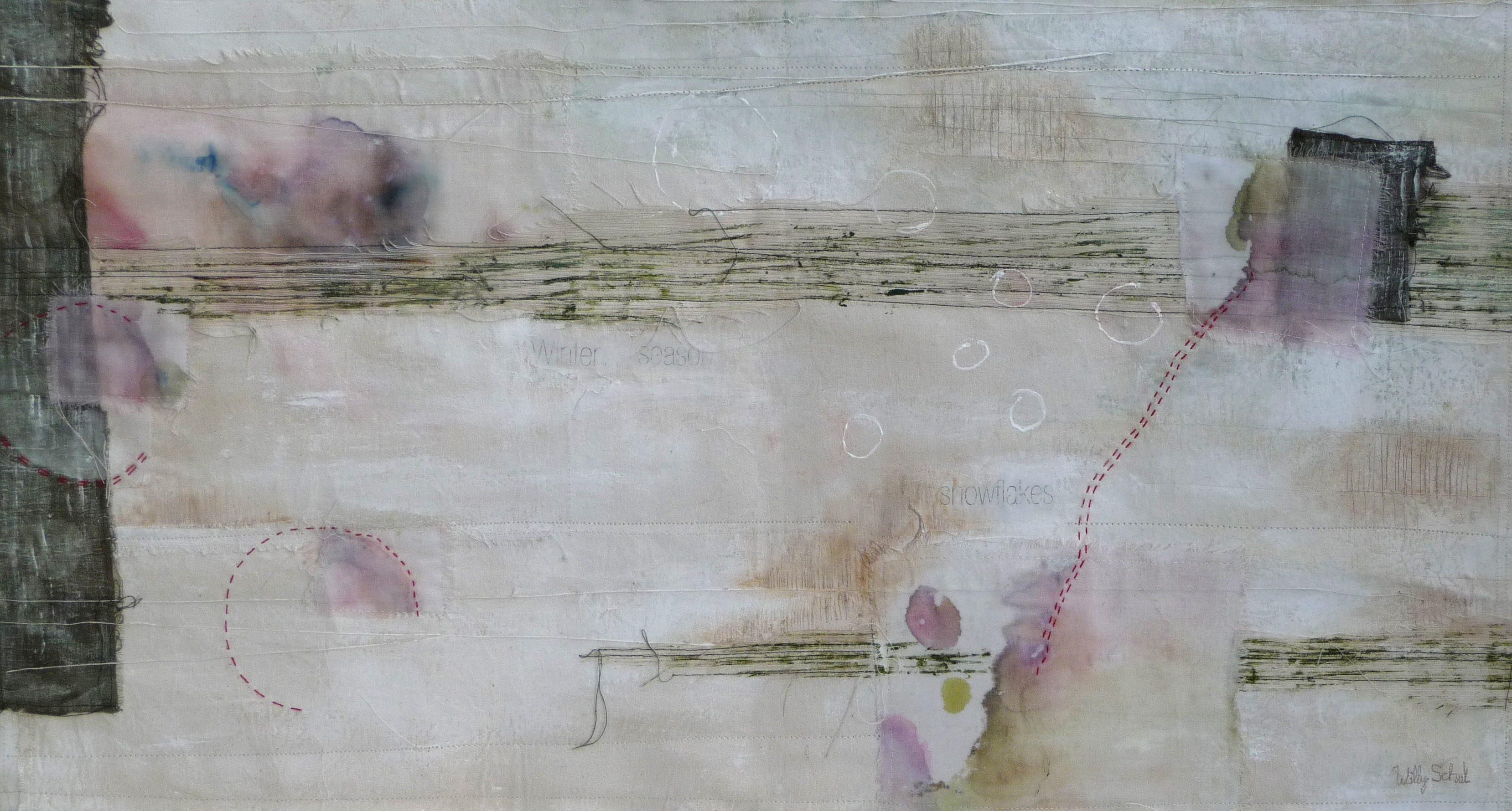 winter - december 2011 Mixed media: verf, machinaal borduurwerk, papier.