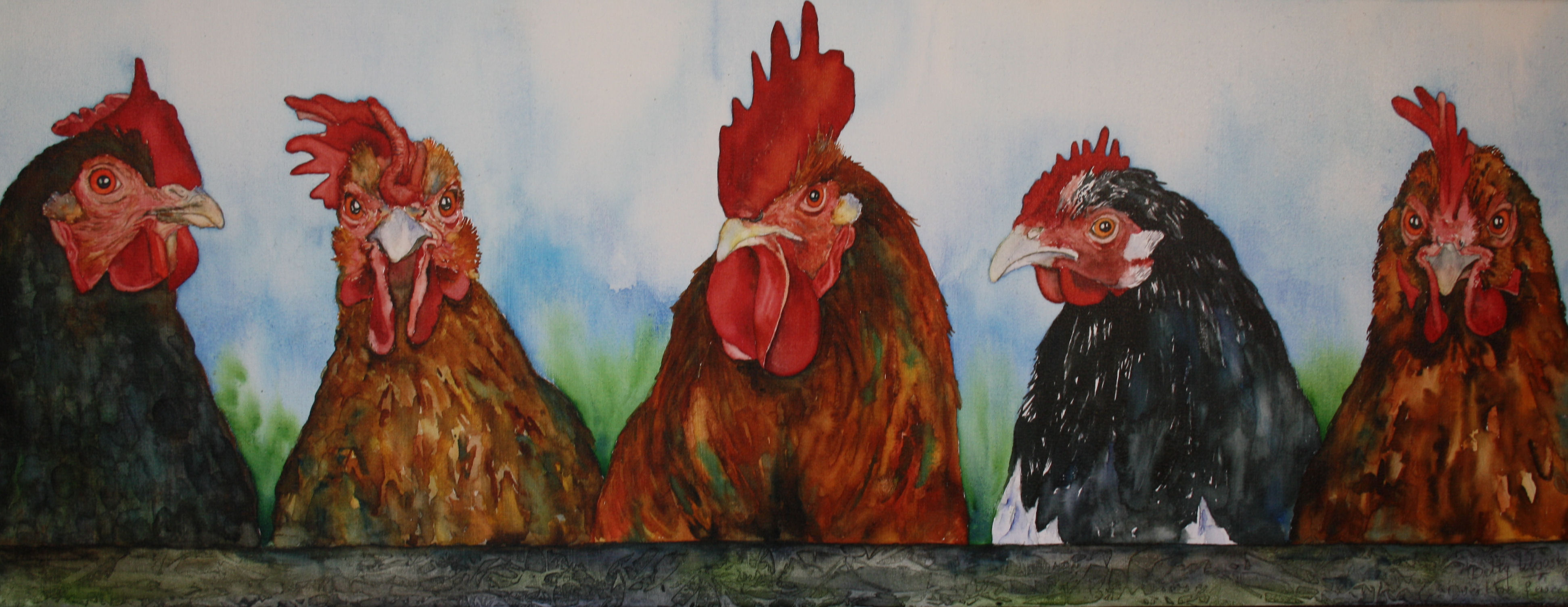 Schilderij Bruin Art Aquarel Realistisch Kunst Natuur Painting Chick Boerderij Kip Kippen Haan Hanen Rooster Chicken Farm Nature Chickens Roosters Watercolour Eibergen Kipjes Kippenschilderij Chickenpainting