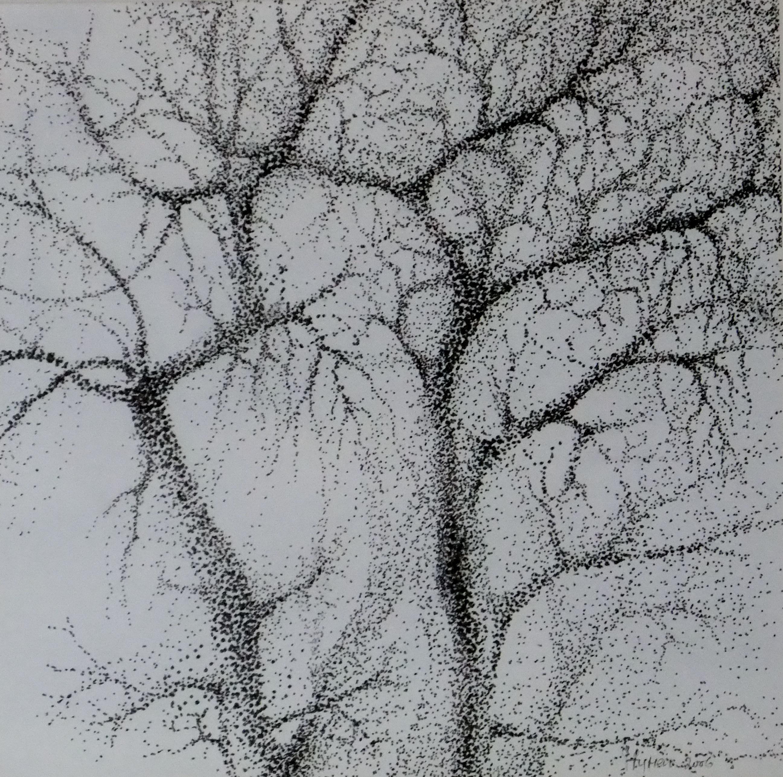 Maakt voornamelijk landschapselementen met voornamelijk bomen als thema en inkt en kleurpapier