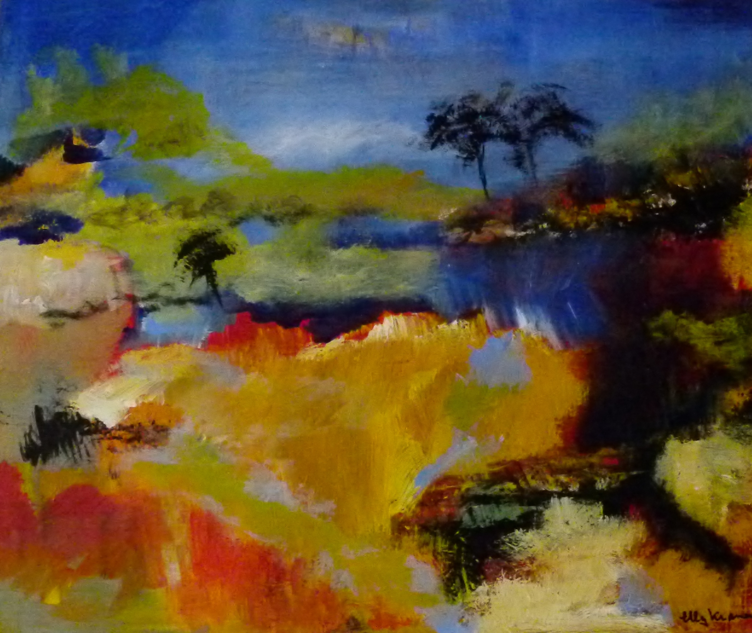 Ik houd van werken met verf. Van kleur. De vele reizen die ik gemaakt heb omzetten in schilderijen, waarin je kunt wegdromen. Elly Kramer -geboren te Rotterdam 1941. kunstschilder 's-Hertogenbosch Elly kramer is een kunstschilder afgestudeerd aan de Academie voor schoone kunsten ARENDONK te Belgie. Daarnaast heeft zij workshops gevolgd bij gerenomeerde regionale kunstschilders.Haar schilderijen van abstracte en landschappelijke aard getuigen van een eigen visie,kleurpallet en karakter, waardoor zij een eigen stijl ontwikkeld heeft. Haar inspiratie doet zij op in de natuur en op reizen.