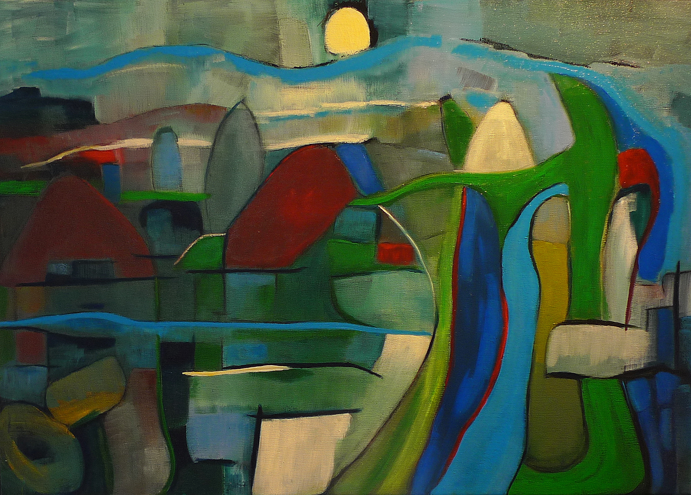 Polder bij volle maan - Als het volle maan is in dit land van dijken, sloten, boerderijen en vaarten daalt er een vreemde gloed neer die de polder een totaal ander aanzien geeft. De vormen en kleuren lijken je dieper te raken.