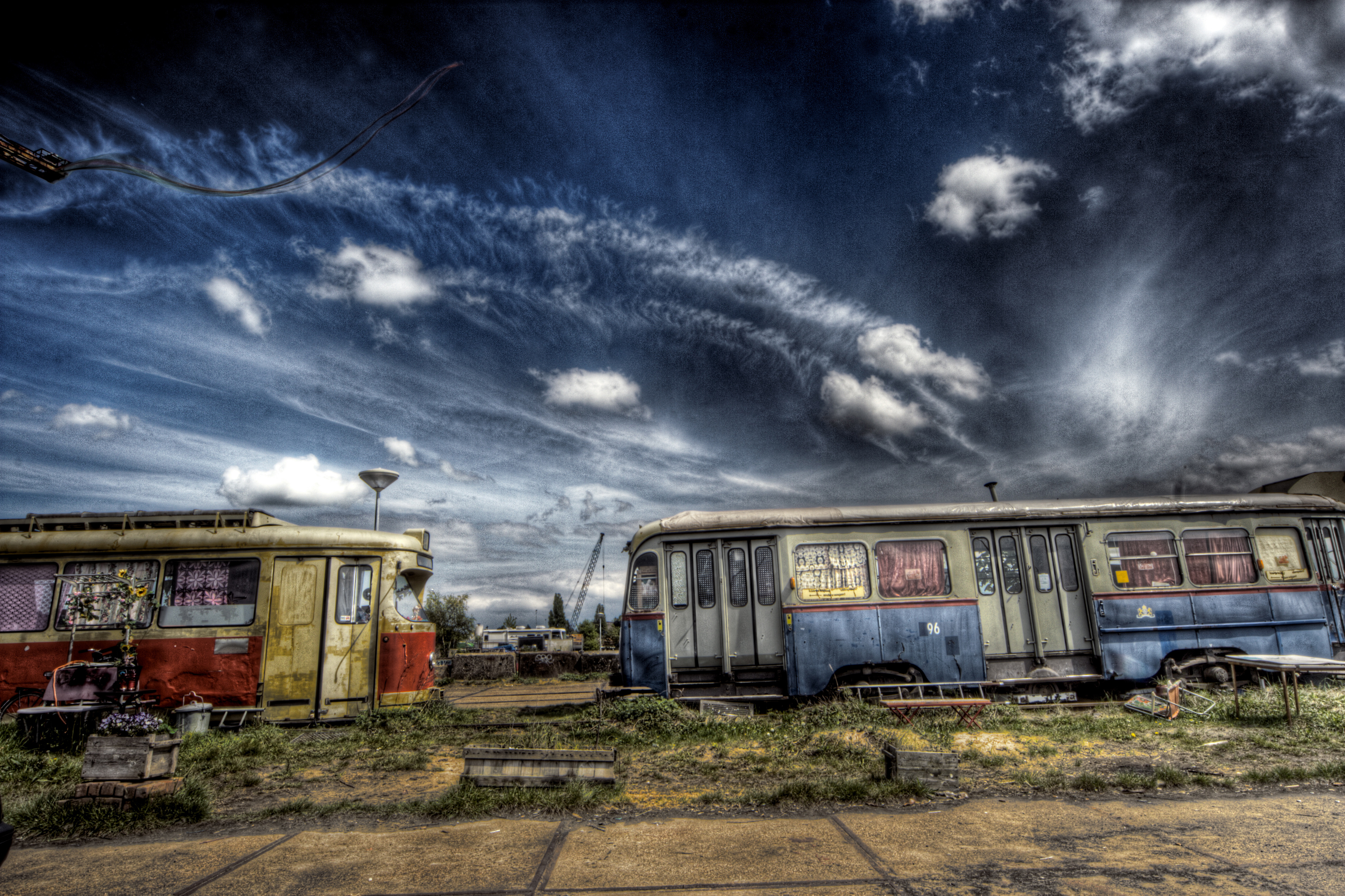 Deze foto heb ik gemaakt op een zeer bijzondere locatie in Amsterdam. Ik heb geprobeerd deze trams, die eerst dienst deden als vervoersmiddel en nu als woning dienen, surrealistisch weer te geven. Ik vond het belangrijk om kleur toe te voegen in dit beeld om de ervaring intenser te maken. De omgeving vraagt hier naar mijn mening ook wel om. Ik wilde graag deze fraaie omgeving, de intense beleving van lichtval, kleur en contrast door middel van dit beeld vastleggen én delen. Uiteraard heb ik zelf deze locaties uitgezocht, zijn deze beelden door mij gefotografeerd, verfijnd naar mijn smaak en visie in de digitale DOKA. De foto is gemaakt met een Canon EOS Rebel XTI en een Sigma lens 12 -24 mm. De foto is digitaal bewerkt.