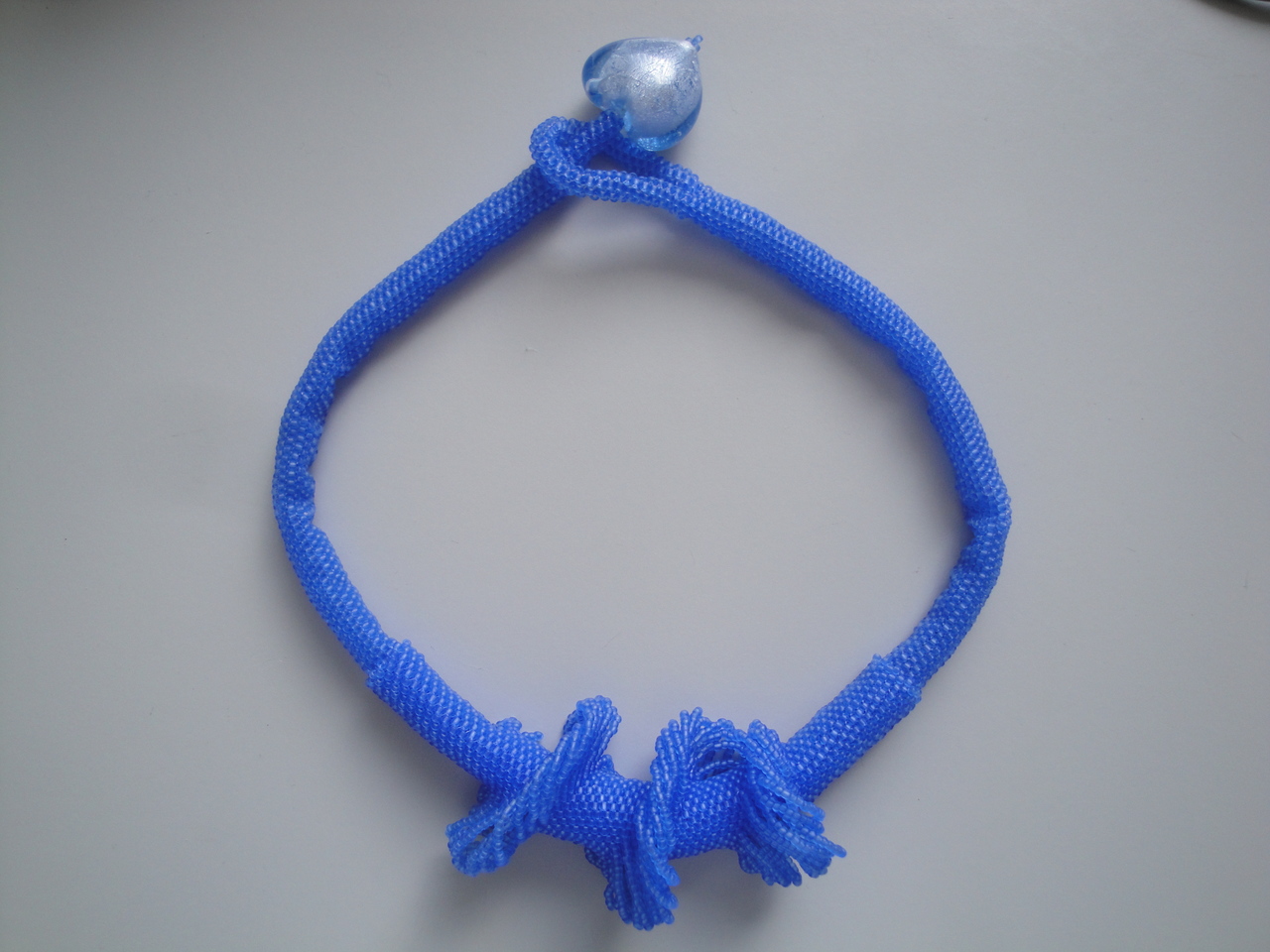 paarsblauwe, zeer kleine rocaillekraaltjes van glas lente ongeveer 50 cm sluiting via glaskraal in de vorm van een hartje (verkocht)