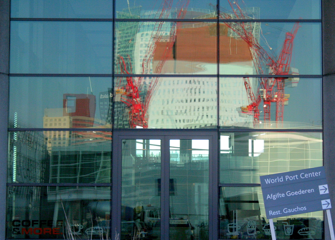 Spiegeling in ruit op Katendrecht in Rotterdam.