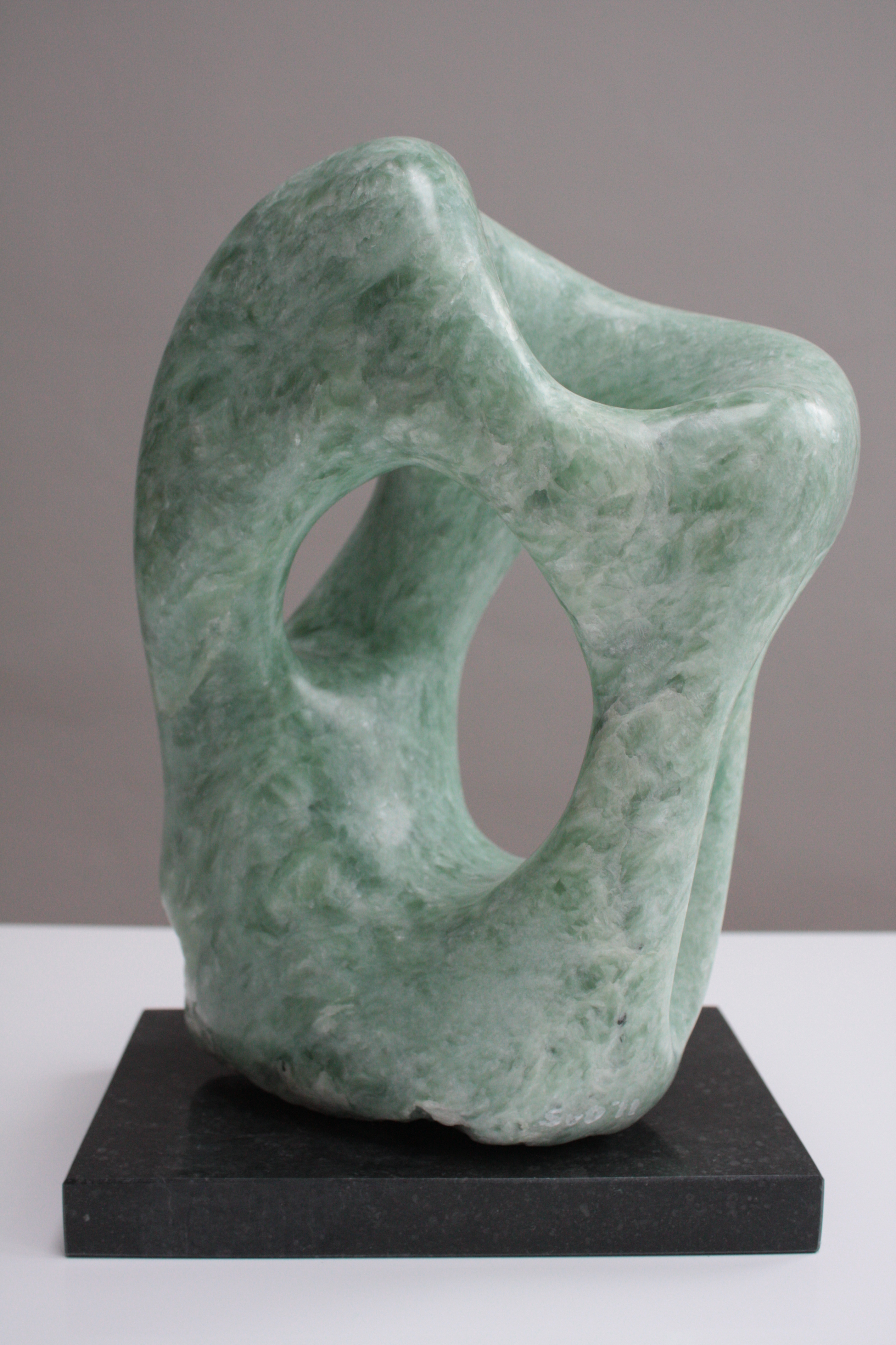 Op hardstenen sokkel zwart Materiaal: Indianse speksteen.