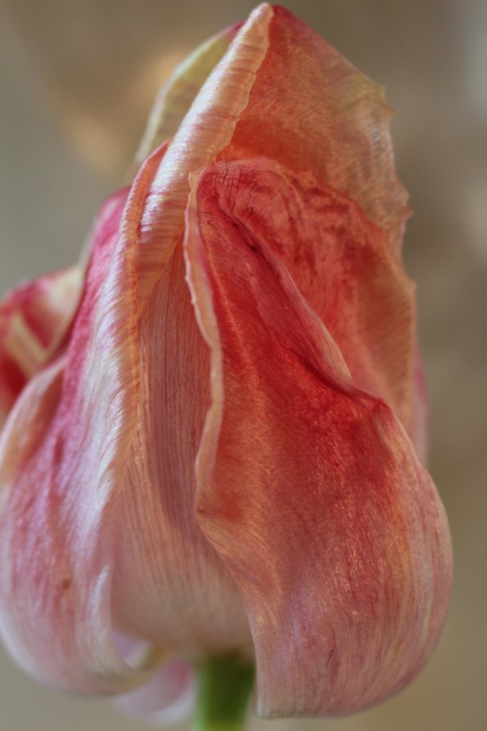 Uitgebloeide tulp. Is bijna transparant geworden.