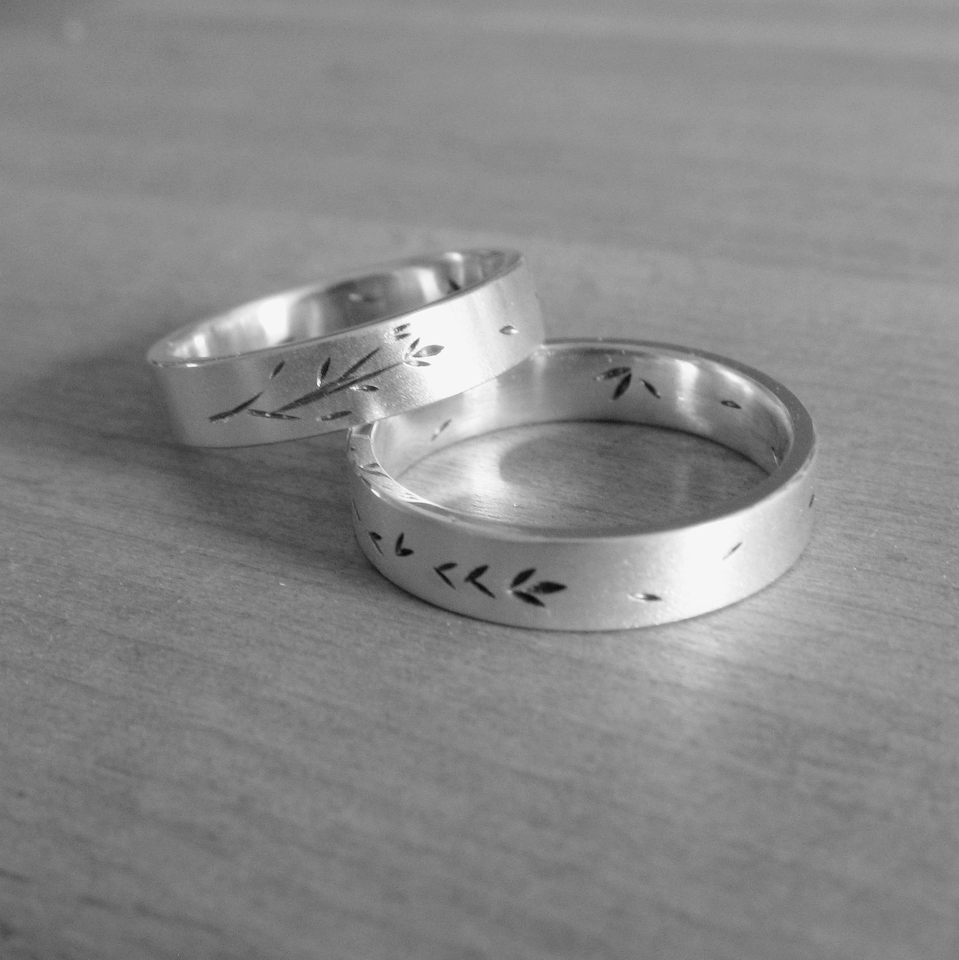 plant-aardige ringen met details die ook in de ring zichtbaar zijn. Mooi detail voor de eigenaar!