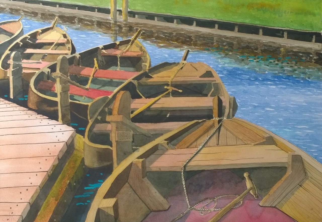 Giethoorn Punter Punters Aquarel