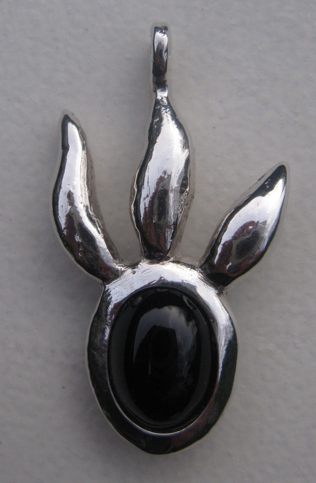 Hanger van massief zilver (92,5 %), waarin een zwarte steen is gezet.