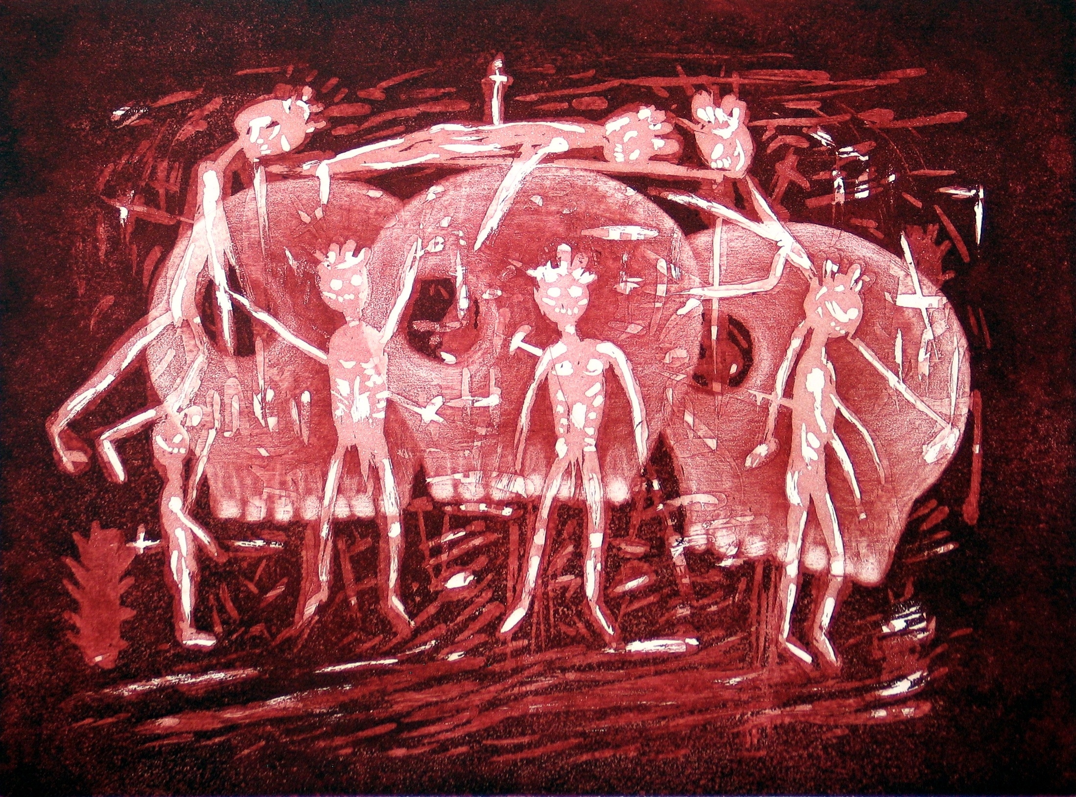 Mensen Rood Kunst Grafiek Drie Dood Droge Naald Aquatint Lijnets Rituelen Indianen Schedels Mezzotint Culturen Hels Mayas Fransen Engelsen Spanjaarden Inca''''''''s Uitgeroeid Doodenverderf