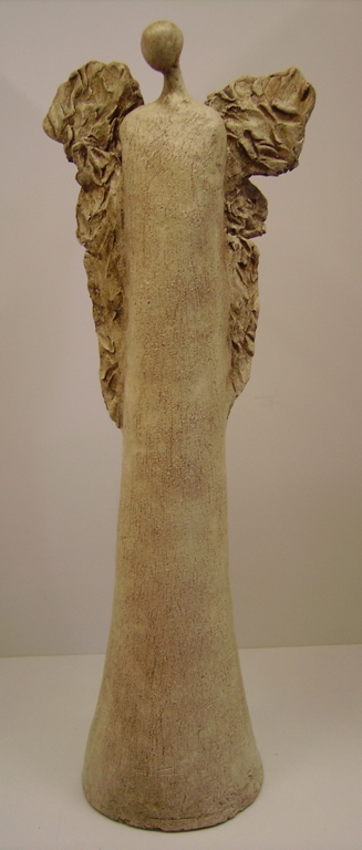 deze engel is hoogestookt, met oxydes ingepoetst en geglazuurd.