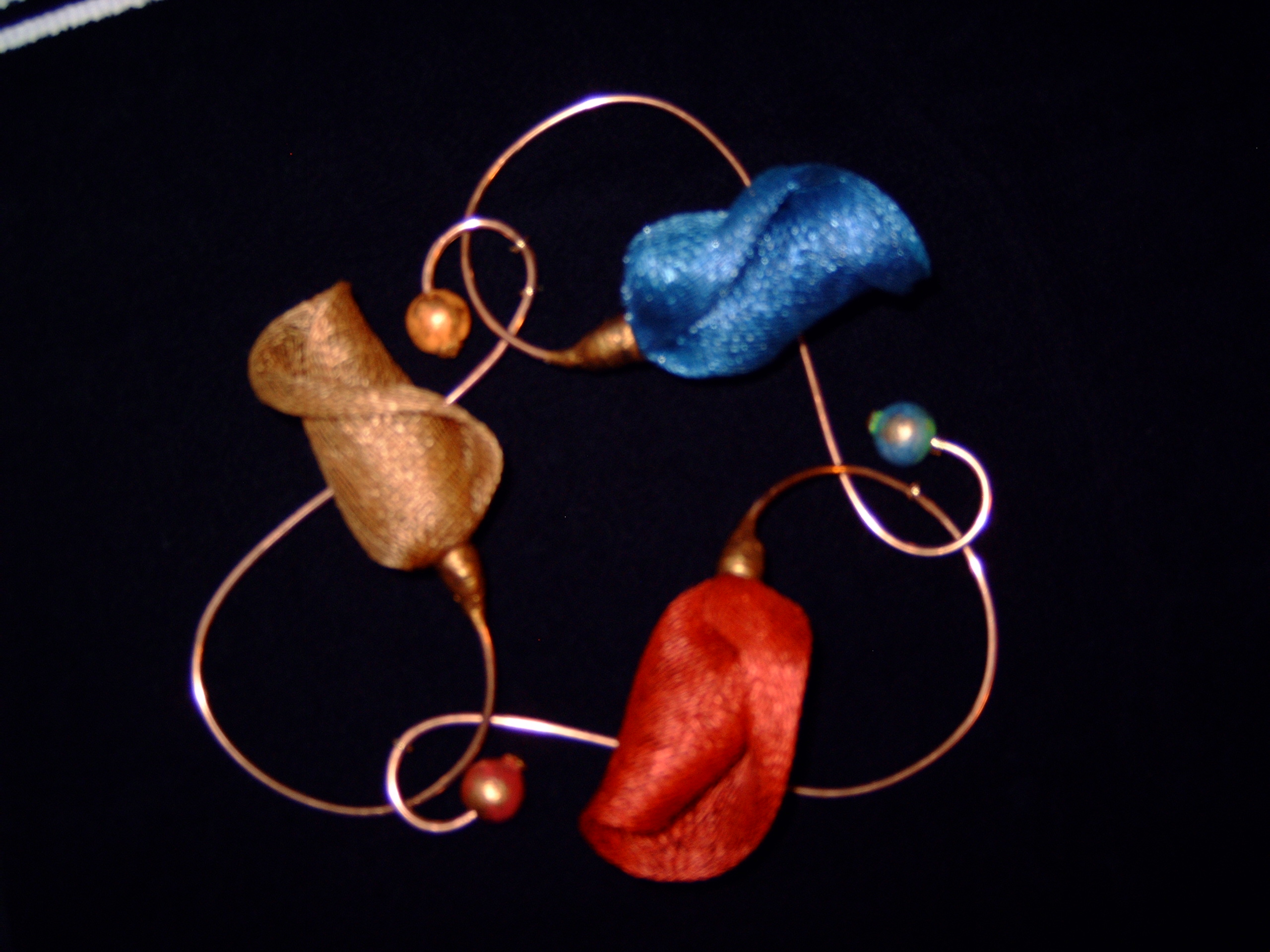 Rood Blauw Tulp Koper Object Textiel Metaal Ruimtelijk Tulipa Hoedgezien Hannymallekote Broche Hanger Oorbel Collier Sieraad