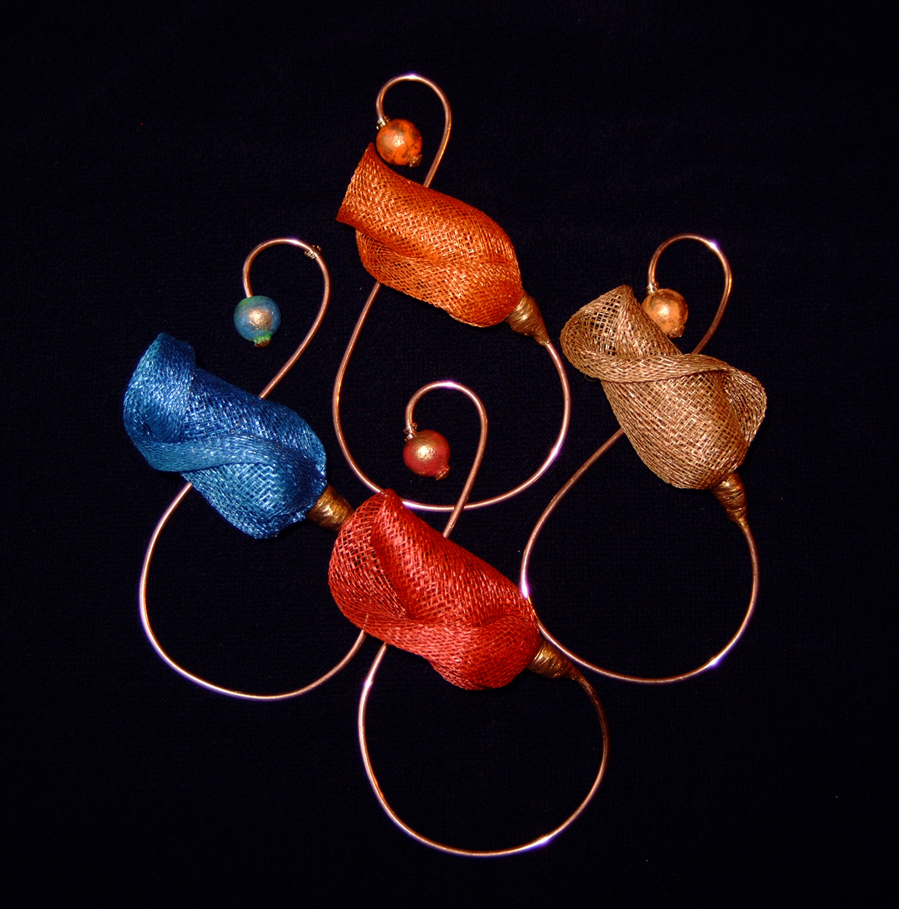 Tulpen Object Textiel Metaal Hanger Ruimtelijk Draagbaar Tulipa Rood Oranje Blauw Goud Koper Sieraad Broche Oorbel Collier
