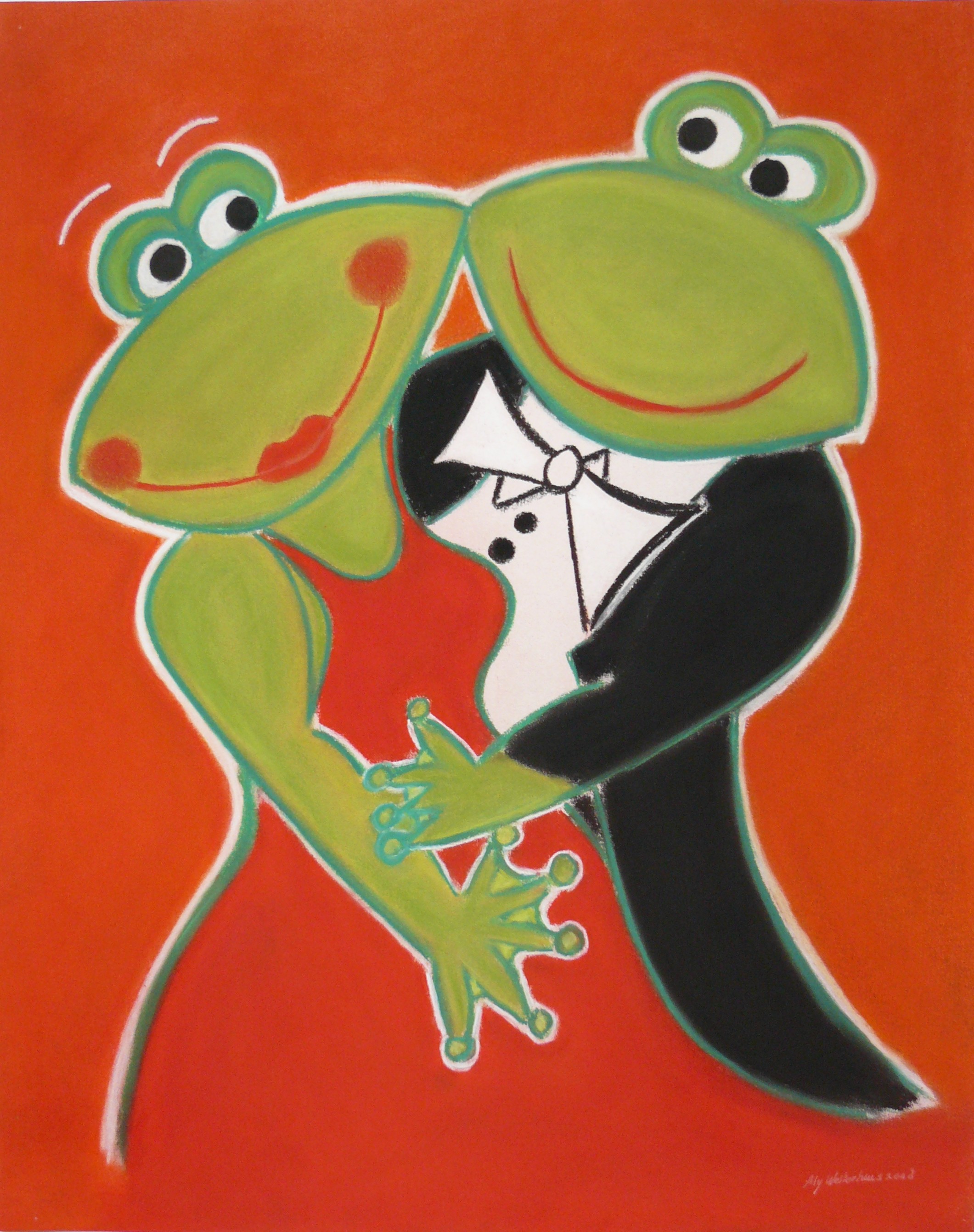 Rood Groen Vrouw Feest Man Kleurrijk En Vrolijk Huwelijk Stel Dansen Speels Grappig Orange Party Lief Trouwen Kikkers Paar Gala Galajurk