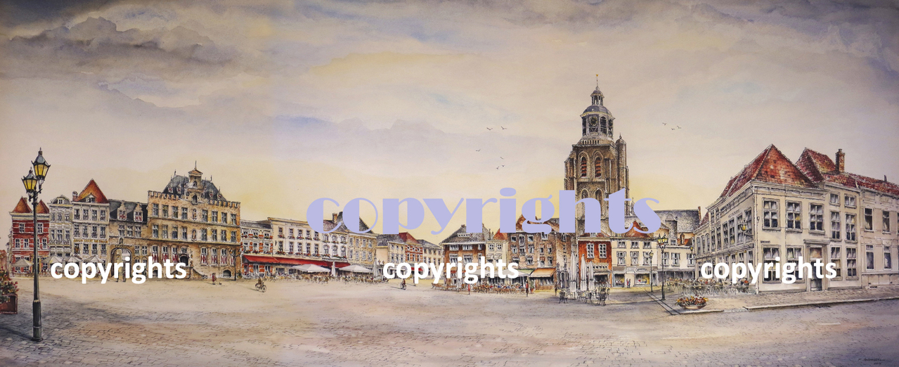 impressie van de Grote Markt in Bergen op Zoom. Luxe kaarten van dit schilderij zijn verkrijgbaar via atelier28.nl of 06-38904426 Gicleeprint op canvas ( 90cm lang ) € 190,-. Het origineel is verkocht.