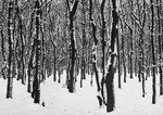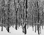 Bomen in de sneeuw in zwart/wit Oplage: 3 stuks Afdruk op dibond achter acryl glas - z/w foto. Achter de foto zit een aluminium u-profiel om het werk op te hangen.