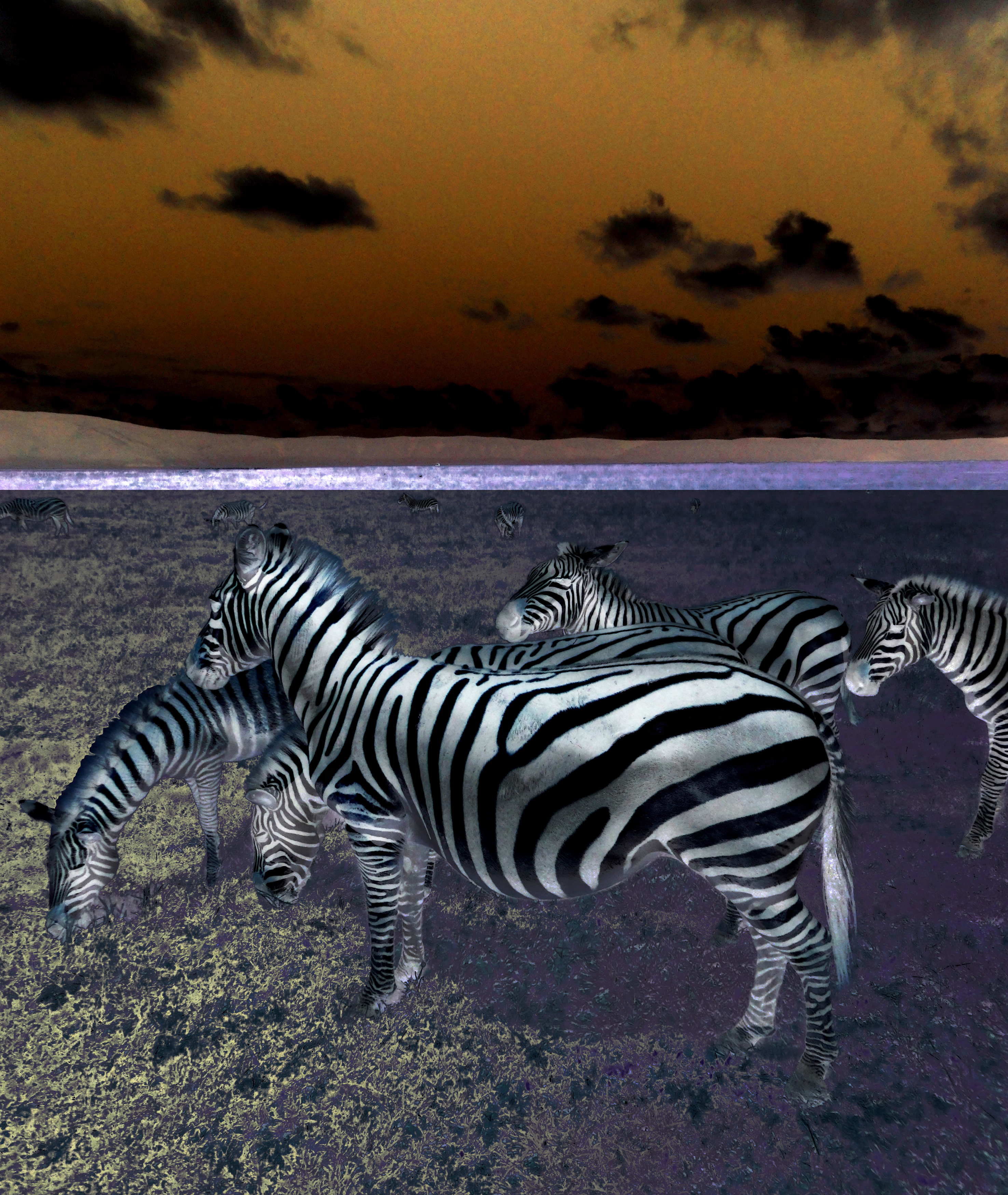 Zelfs in negatief is een zebra nog een zebra! Wat een prachtig dier. | geprint op canvas en gelakt, met witte of zwarte ‘passe partout’ rand: 70 x 70 cm. oplage: max. 10 | Serie "Afrika" |