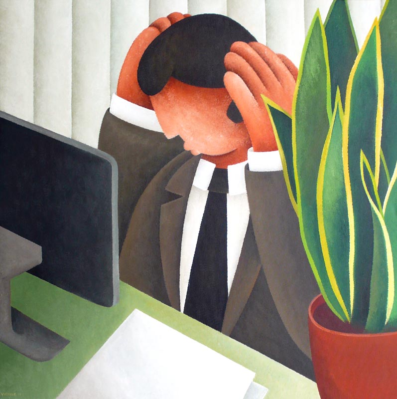 Man Papier Bureau Kantoor Computer Zakelijk Lamellen Sanseveria Zakenman
