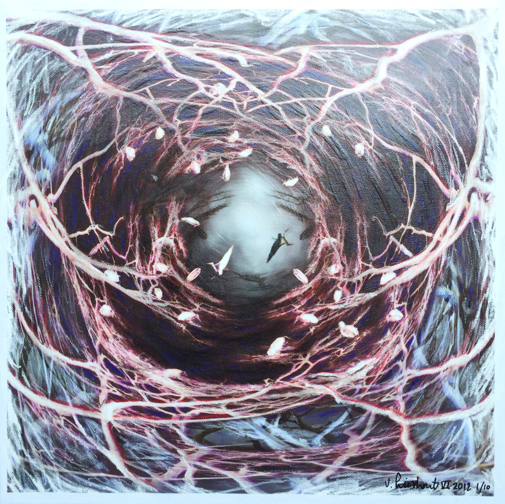 Serie "Afrika" | > Fotografische bewerking, geprint op canvas, nabewerkt met oliepastel. Witte passepartout-rand maakt onderdeel uit van het doek.