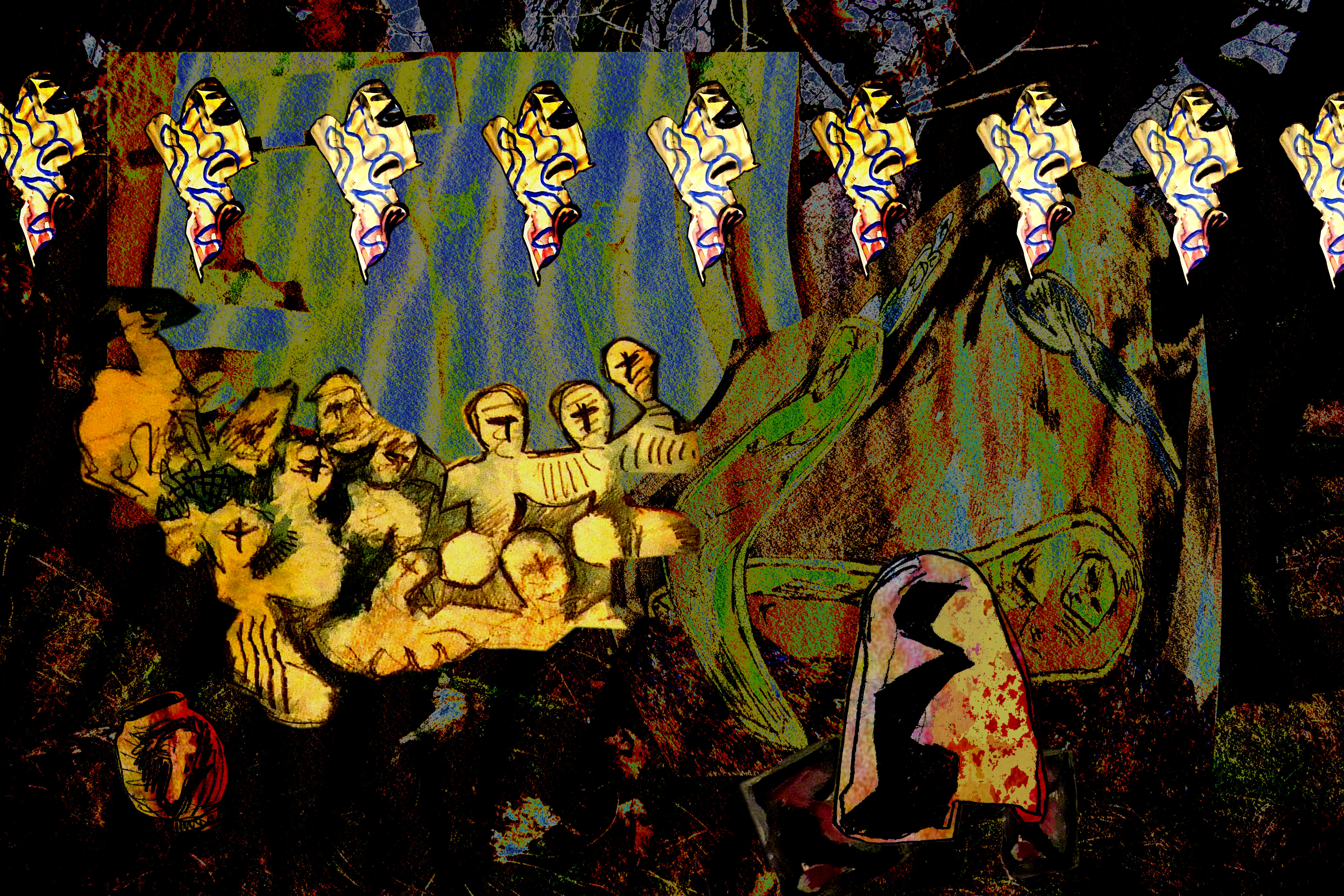 Digitale collage van fragmenten van tekeningen, schilderijen en grafiek gedrukt op Hahnemühle Fine Art papier. Andere formaten mogelijk