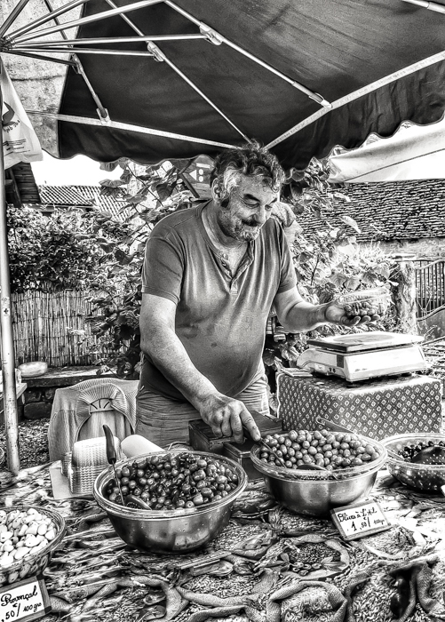 Merchant Marktkoopman Zwart Wit Black White Sainte Nathalene France Frankrijk Markt