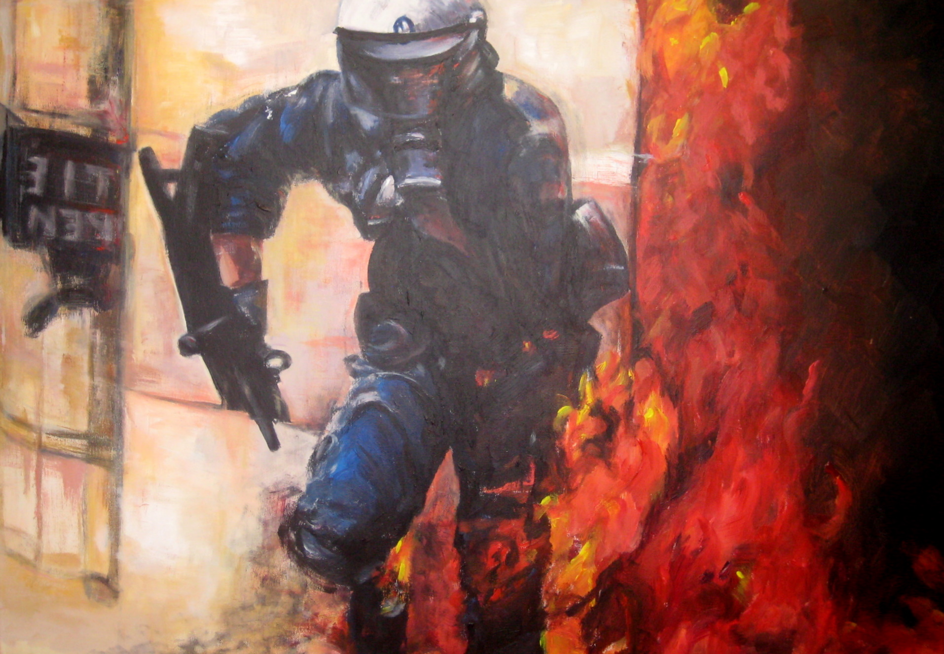 Schilderij Acryl Vuur Agent Brand Vlammen Bom Schilden Brandbom