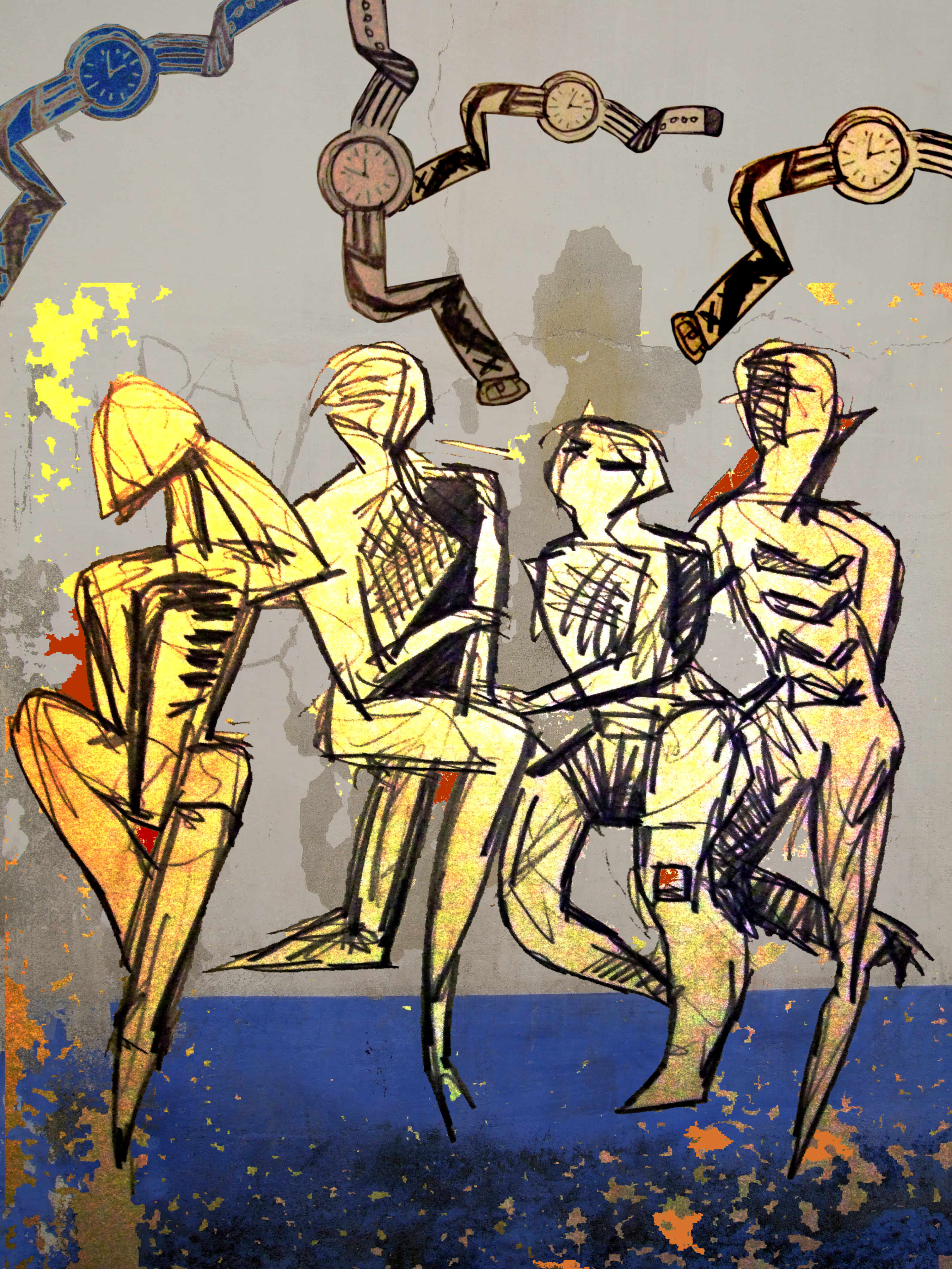 Digitale collage van fragmenten van mijn tekeningen, schilderijen en grafiek gedrukt op Fine Art papier. Andere formaten mogelijk: bv. beeldformaat 75x50 cm= € 250,-- (papierformaat 85x60cm)