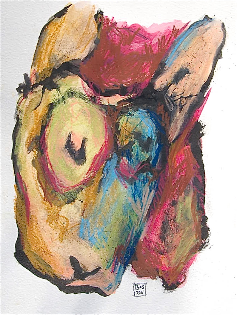 Kleurrijke tekening snel opgezet zonder vooropgezet plan, zet 'n kleur, zet er nog een, en nog een... Het creëren is begonnen, geen verstand, alleen intuïtie...