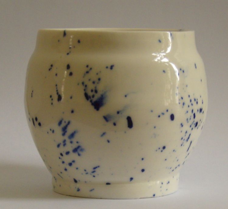 Japans aandoend gedraaid porselein met delfts blauwe decoratie.