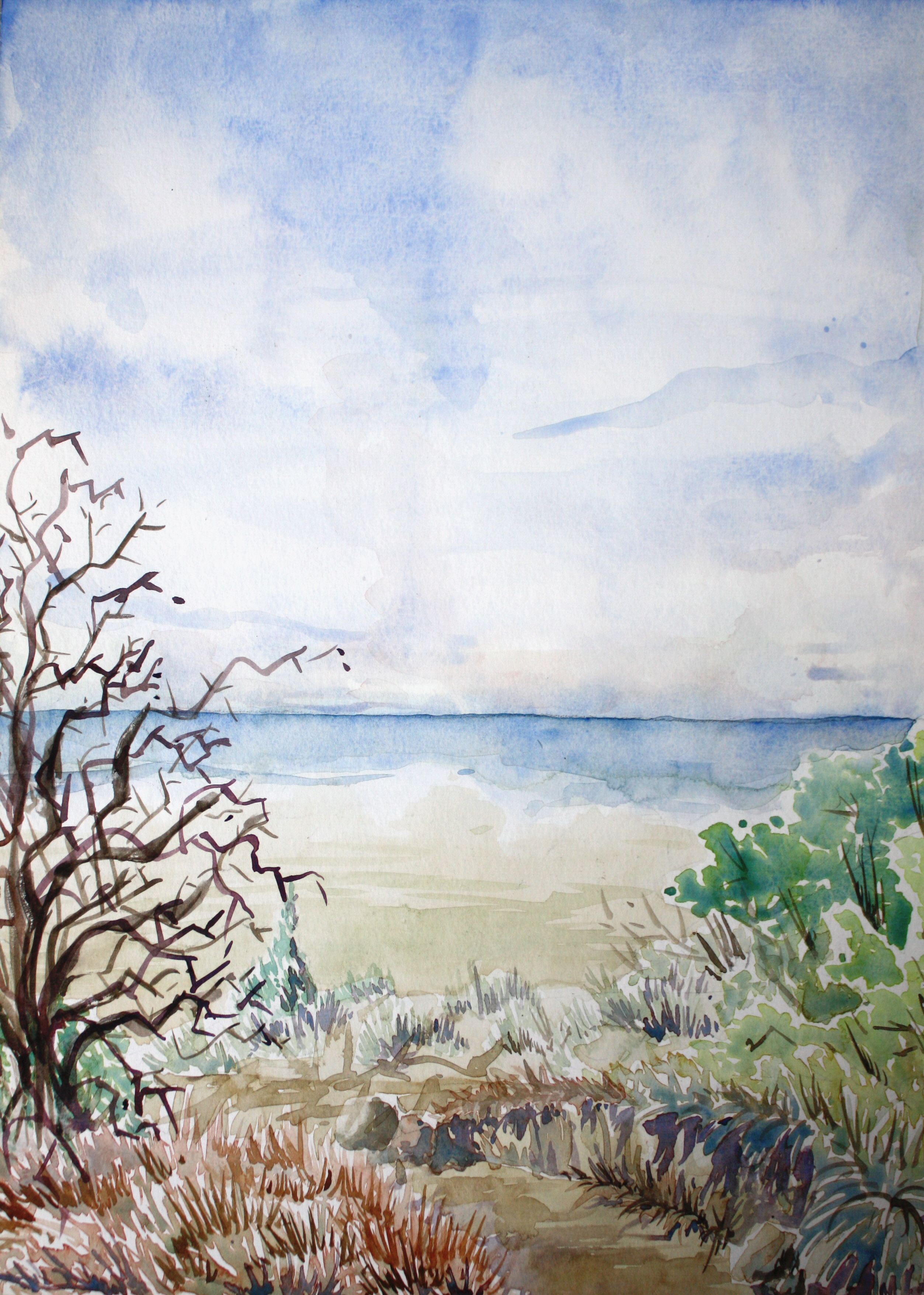 Zee Aquarel Beach Ocean Watercolour Strandje