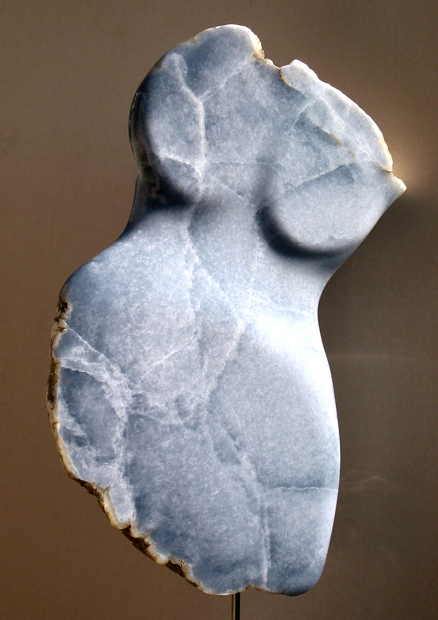 Geabstraheerde vrouwenfiguur in blauwe albast.