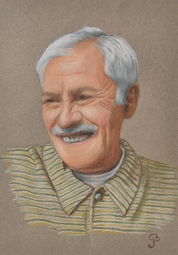Portret, van een overleden buurman, geschonken aan zijn vrouw. Ze nam hem ontroerd in ontvangst en het heeft nu een mooi plekje in haar huiskamer.