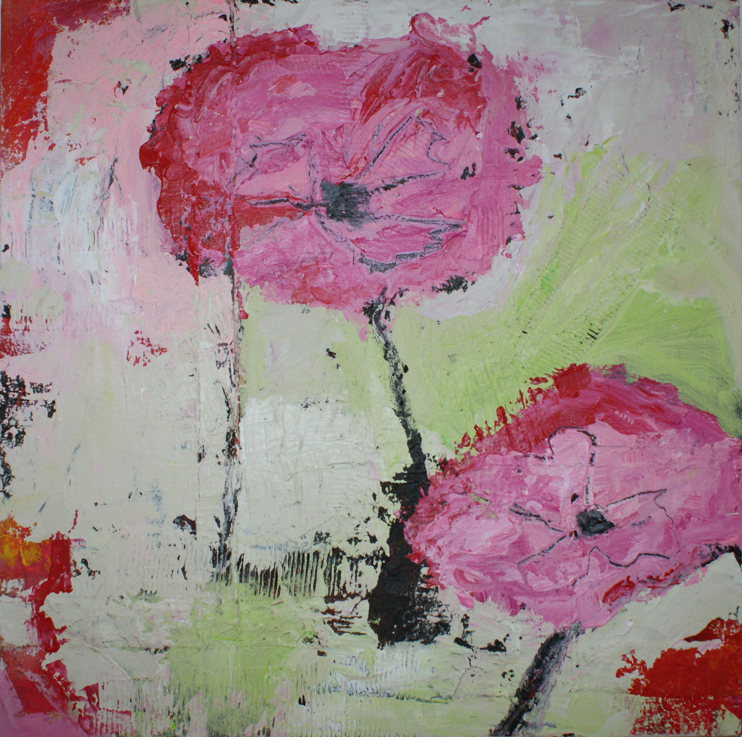 Rood Mixed Media Bloem Roze 2bloemen Verjaardag