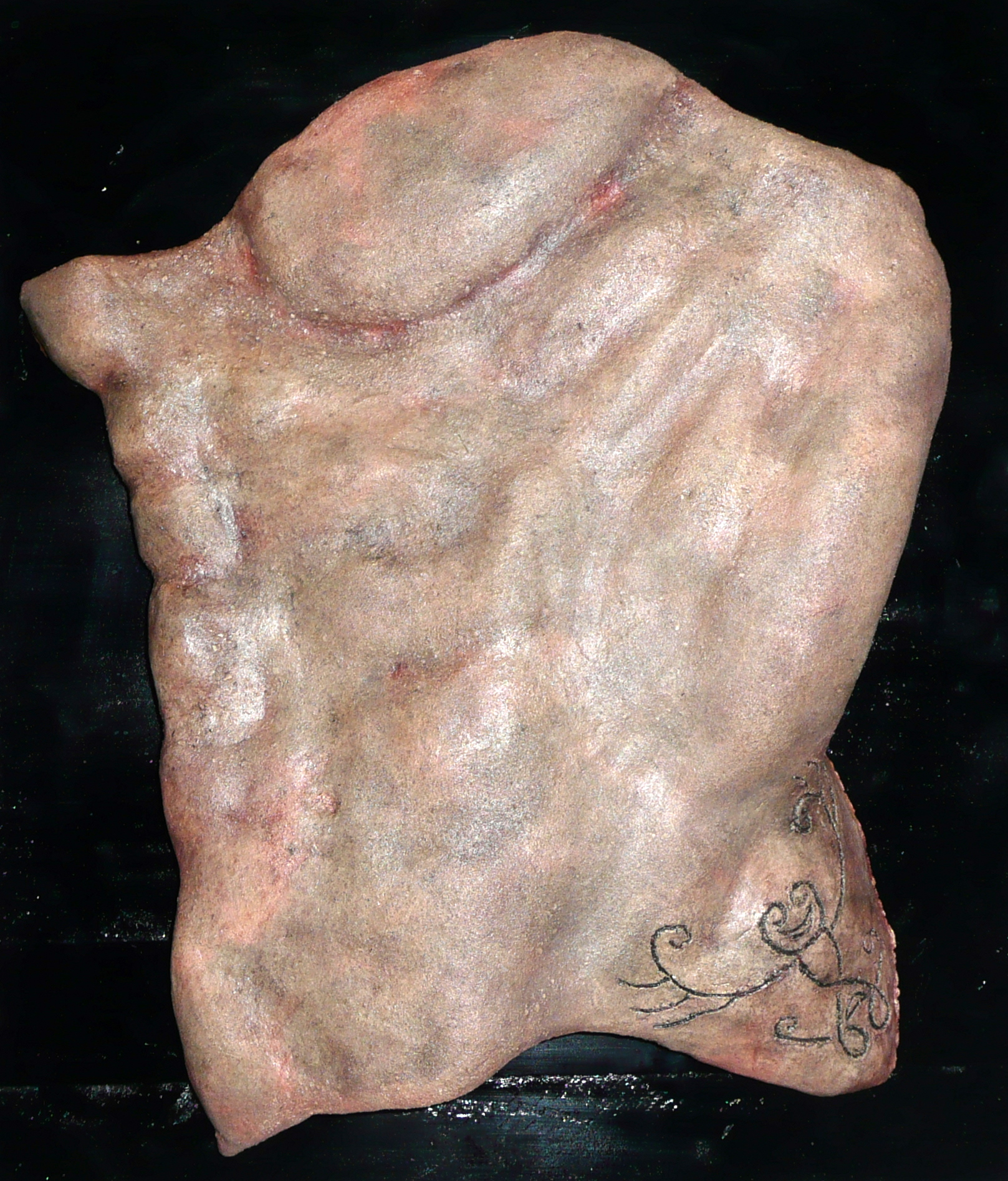 Deel van mannelijk torso, incl achterplaat om op te hangen