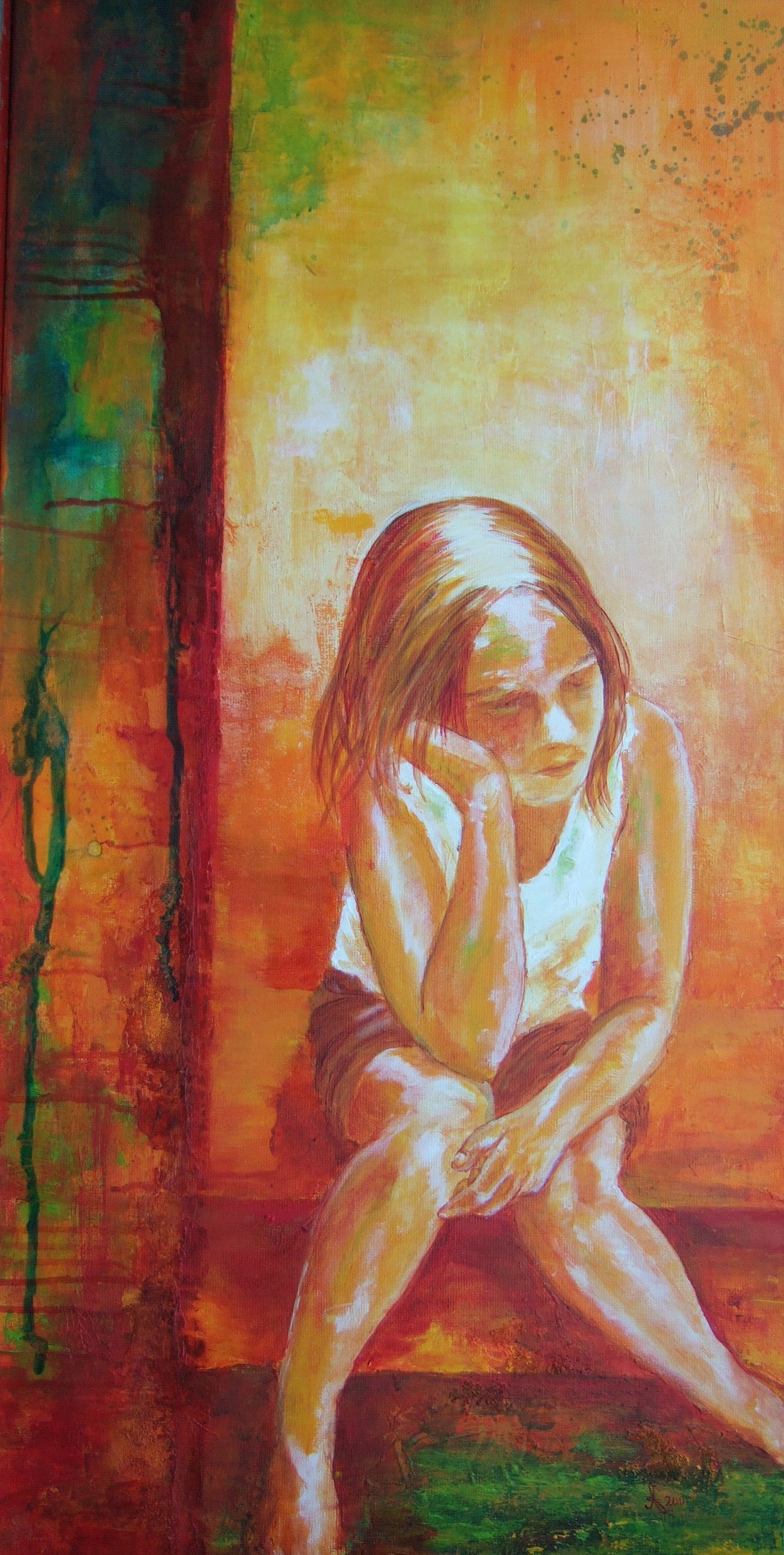 Een mokkend meisje op de trap, laat maar even zitten, gaat wel weer over.