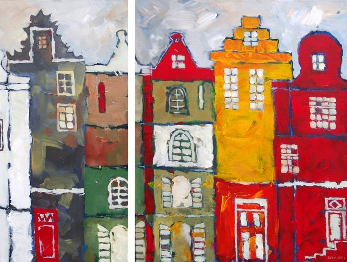 Tweeluik Kleurrijk Grachtenhuizen