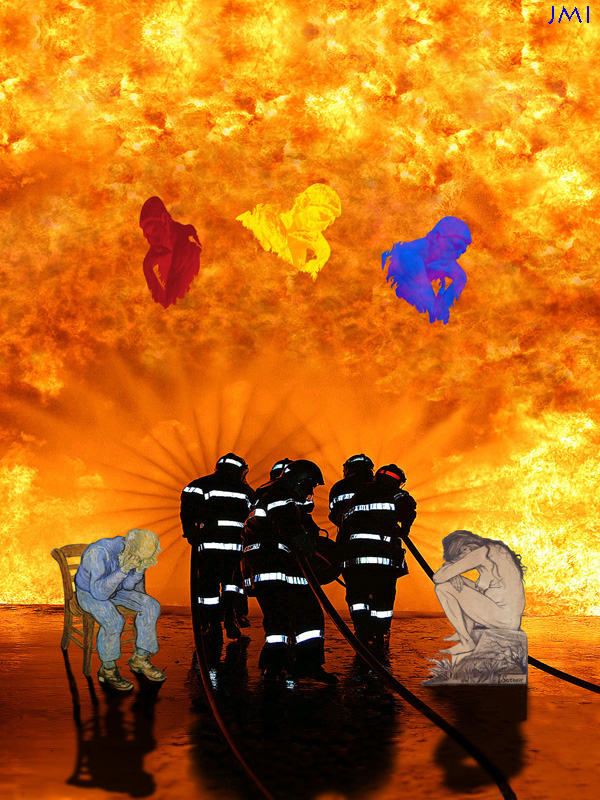 Het gesprek aangaan met de collectieve pyromanie. Kortstondig en slijtvast verdriet agv verlies van dierbare, essentiële delen vh actuele Zelf.