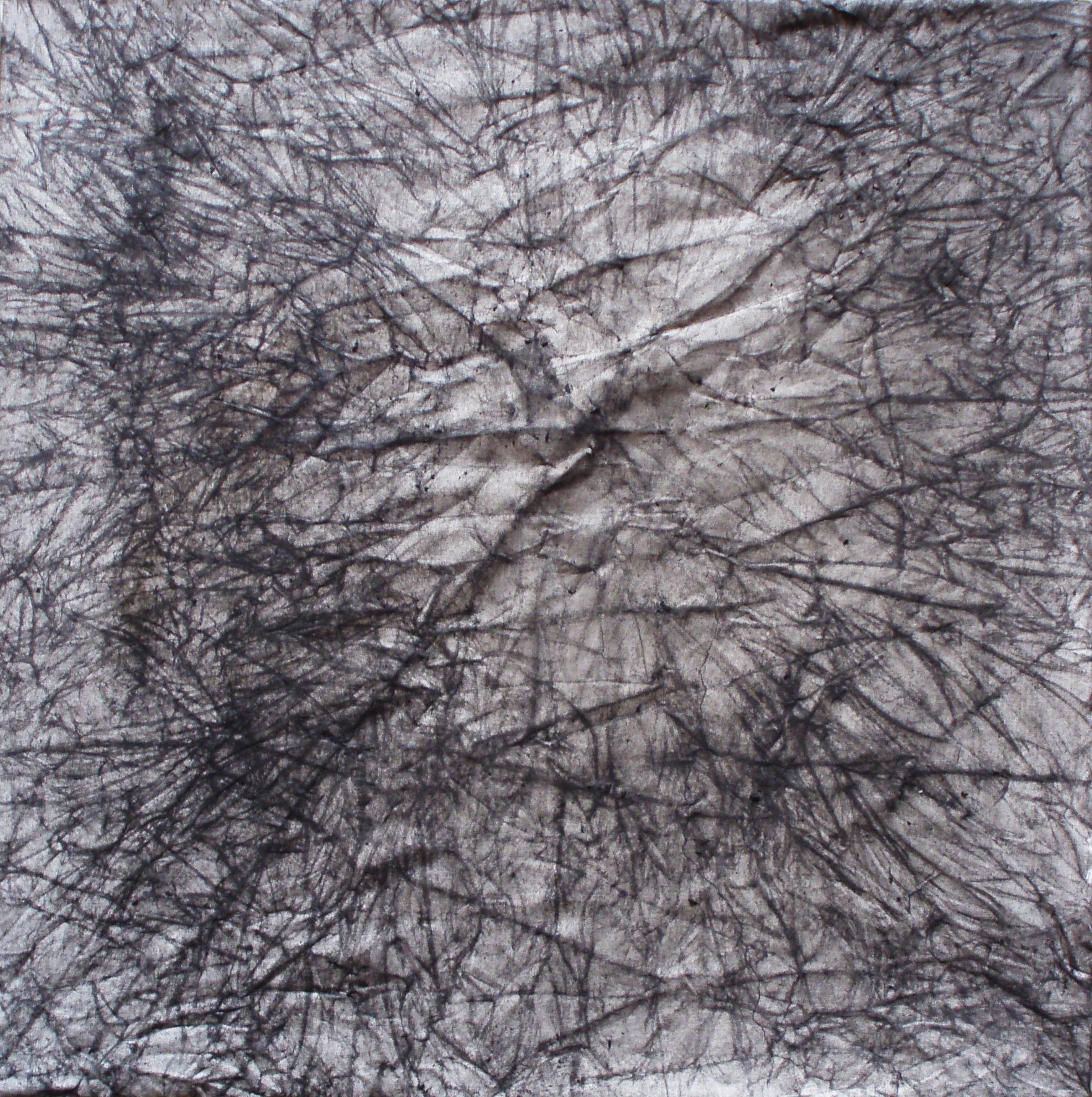 Papier dat gemanipuleerd is, waardoor 'beschadigingen ' zijn ontstaan. Bij het opbrengen van de verf worden deze zichtbaar.