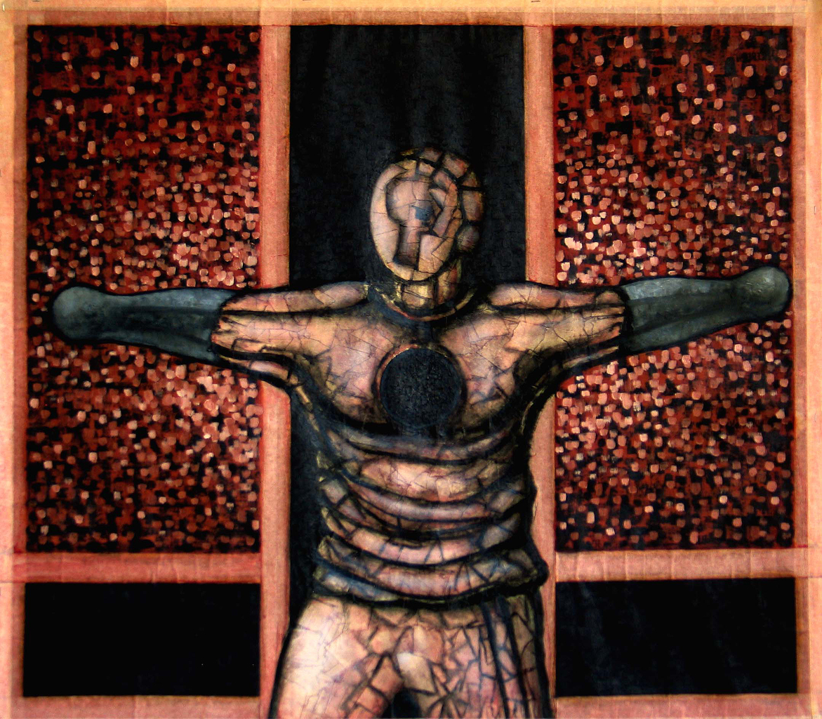 Zwart Bruin Olieverf Mens Abstraherend Kwetsbaar Krachtig Kruis Sterk Doelwit Schilderstape Veerkrachtig