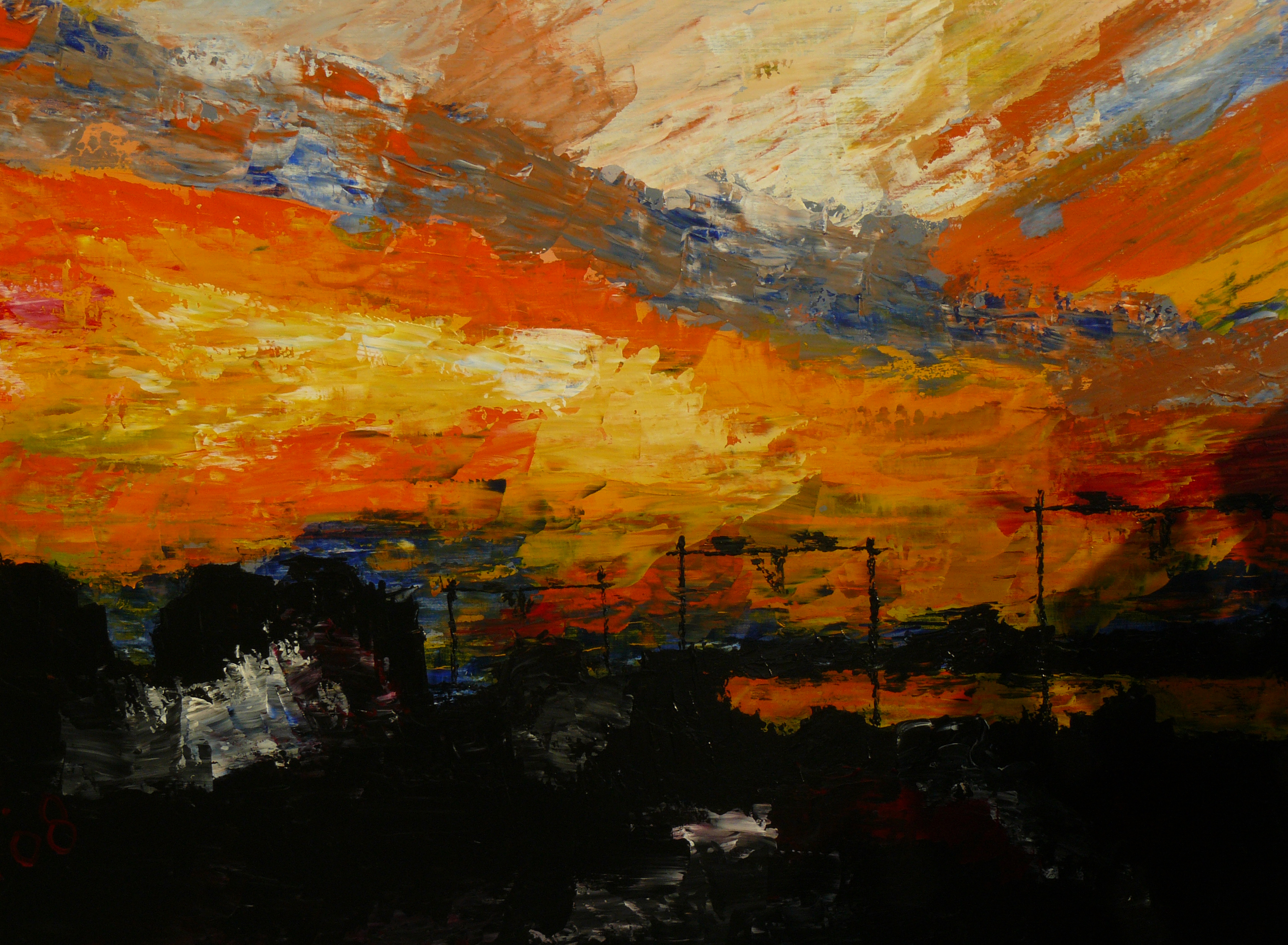 Oranje Natuur Acrylverf Mdf Avondzon Spoorweg Maassluis Oranjeplas
