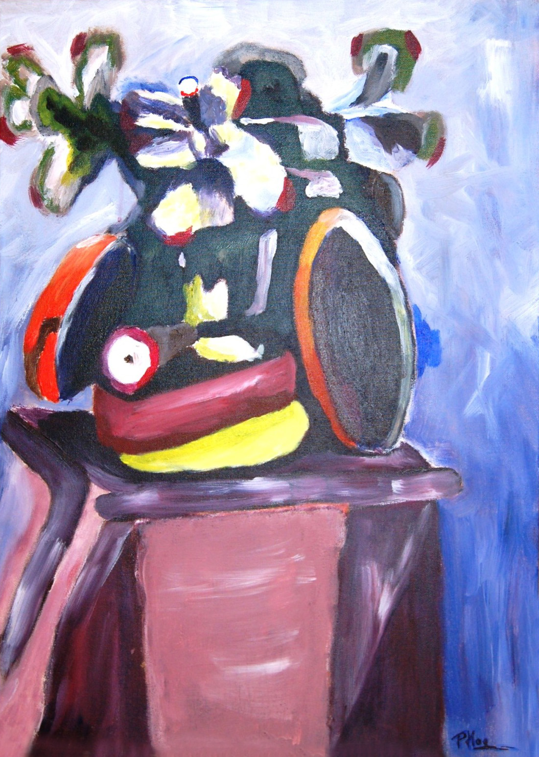 Peter Haghuis: Ik schilder graag alles tussen abstract en figuratief zonder de uitersten daarvan en experimenteer daarbij graag met allerlei kleurencombinaties. De schilderplek, het model of het stilleven gebruik ik graag om een nieuwe wereld te creëren. Mijn wereld. En voor de toeschouwer soms een ontdekkingsreis.