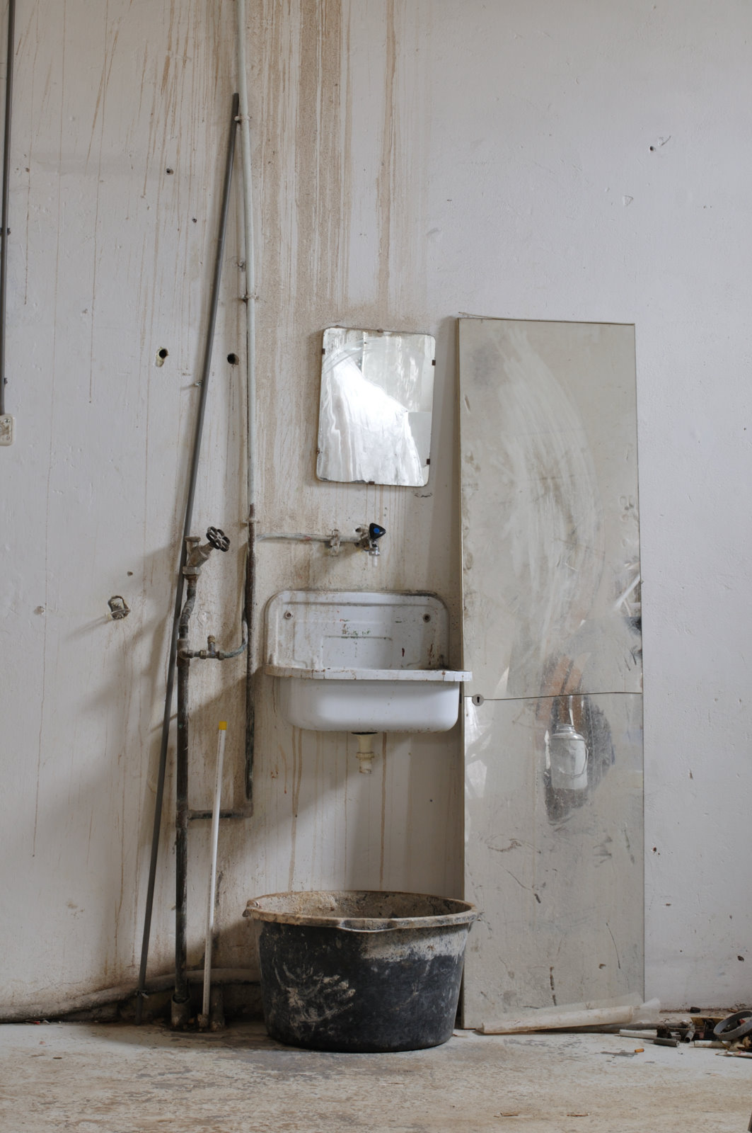 Water Gootsteen Uitstortgootsteun Vies Vuil Spiegel Atelier Bouw Verbouwing