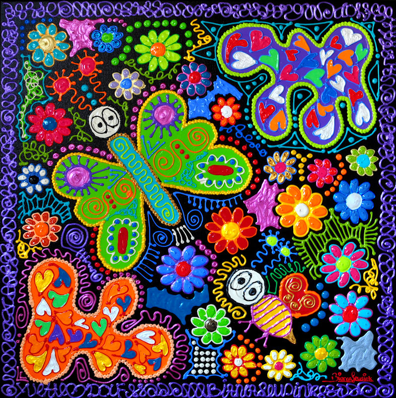 Ik ben professioneel kunstenaar en maak kleurrijke moderne en vrolijke kunst. In 1998 ben ik begonnen met schilderen en heb verschillende materialen en technieken uitgeprobeerd maar heb pas echt mijn draai gevonden toen Jan te Wierik mij een jaar later een groot linnen doek gaf met de opdracht hier een echte 'Bianca Leusink' van te maken. Zo gezegd zo gedaan en sindsdien heb ik mij echt kunnen uiten op doek, steen etc. en een eigen stijl weten te creeren met herkenbare vormen en heldere kleuren.