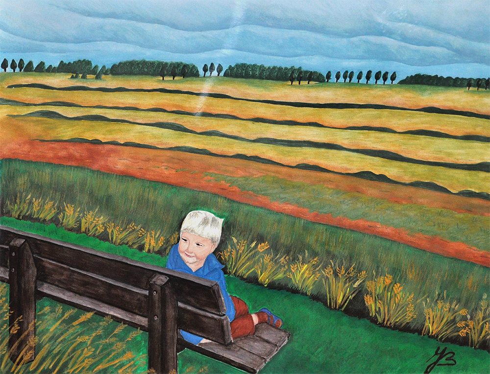 Nageschilderd van een foto van mijn zoontje, toen 2 jaar oud. Eén van mijn eerste schilderwerken met plakaatverf. Gebrek aan ervaring resulteert een beetje in de stijl van de Primitieven.