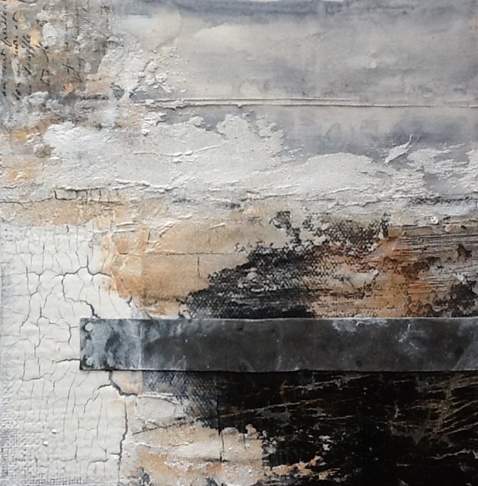 Wit Zee Grijs Zwart Wolken Lood Paneel Krassen Sienna Gesso Verweerd Crackelee