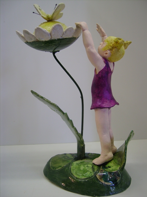 keramiek, gekleurde klei, glazuur, acryl en aluminiumdraad.