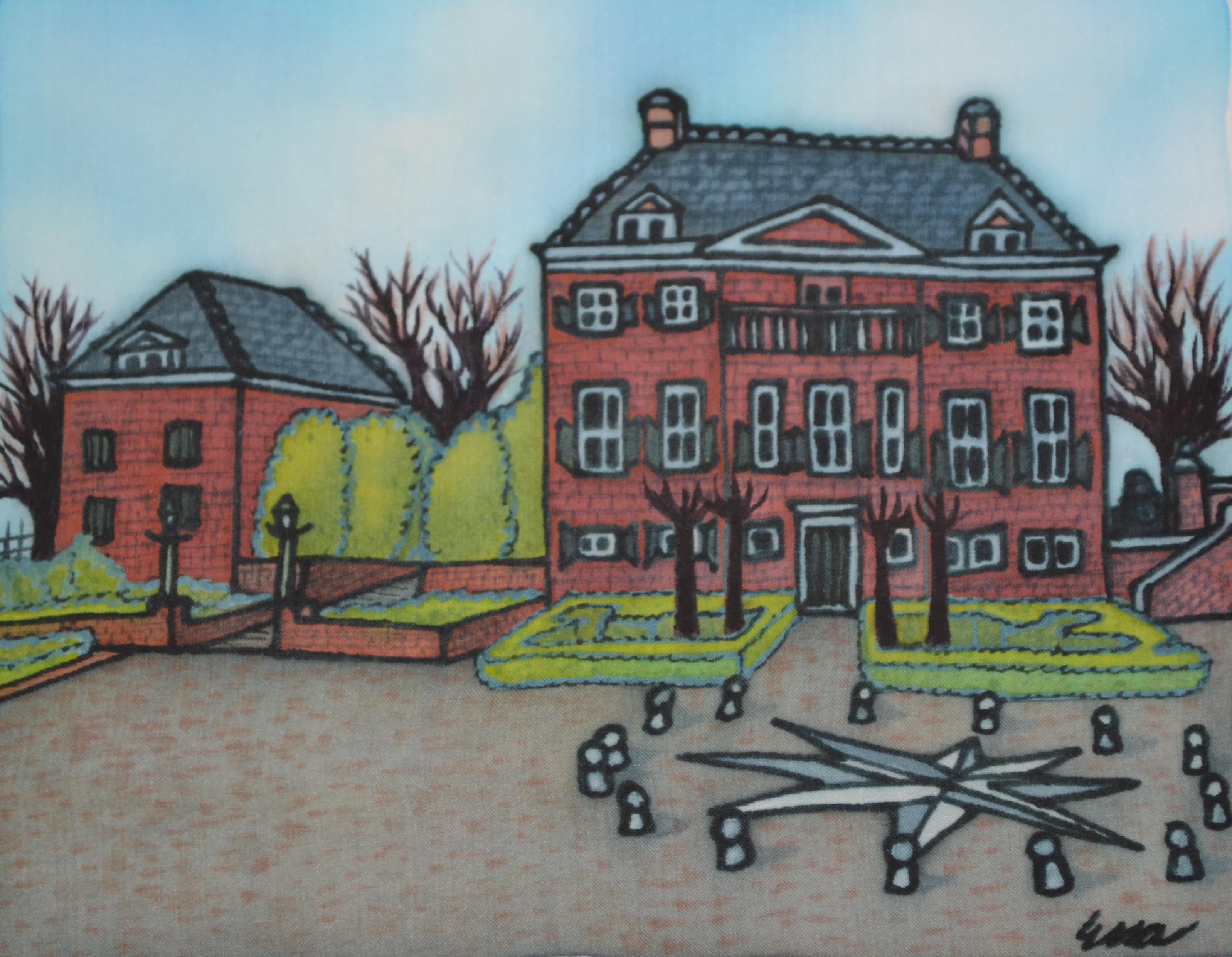 Ink op zijde schilderij "Gemeentehuis Hellevoetsluis". Te koop bij de "Kunstuitleen in Hellevoetsluis" www.kunstuitleenhellevoetsluis.nl , VERKOCHT