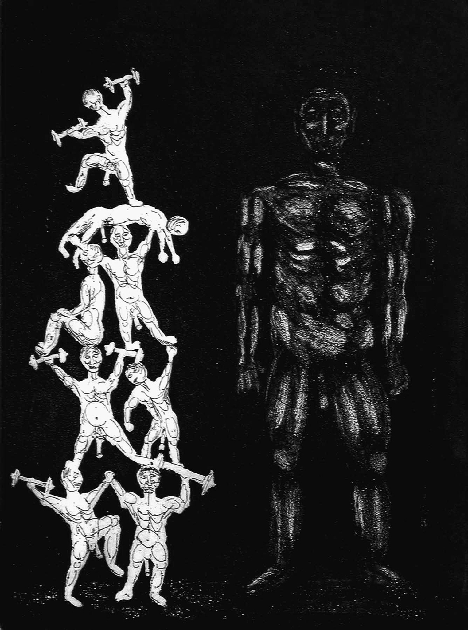 Mensen Man Grafiek Ets Maatschappij Aquatint Lijnets Sterk Pyramide Spieren Vechten Mezzotint Omhoog Worsteling Verwording