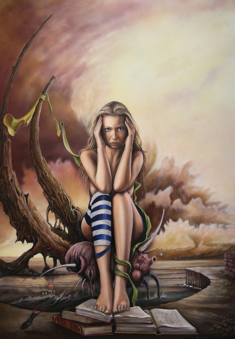 Jo Joosten kunstschilder,magisch realist , surealist,Onwerkelijke en onverwachte situaties in een wereld die gekenmerkt wordt door vervreemding en mysterie.